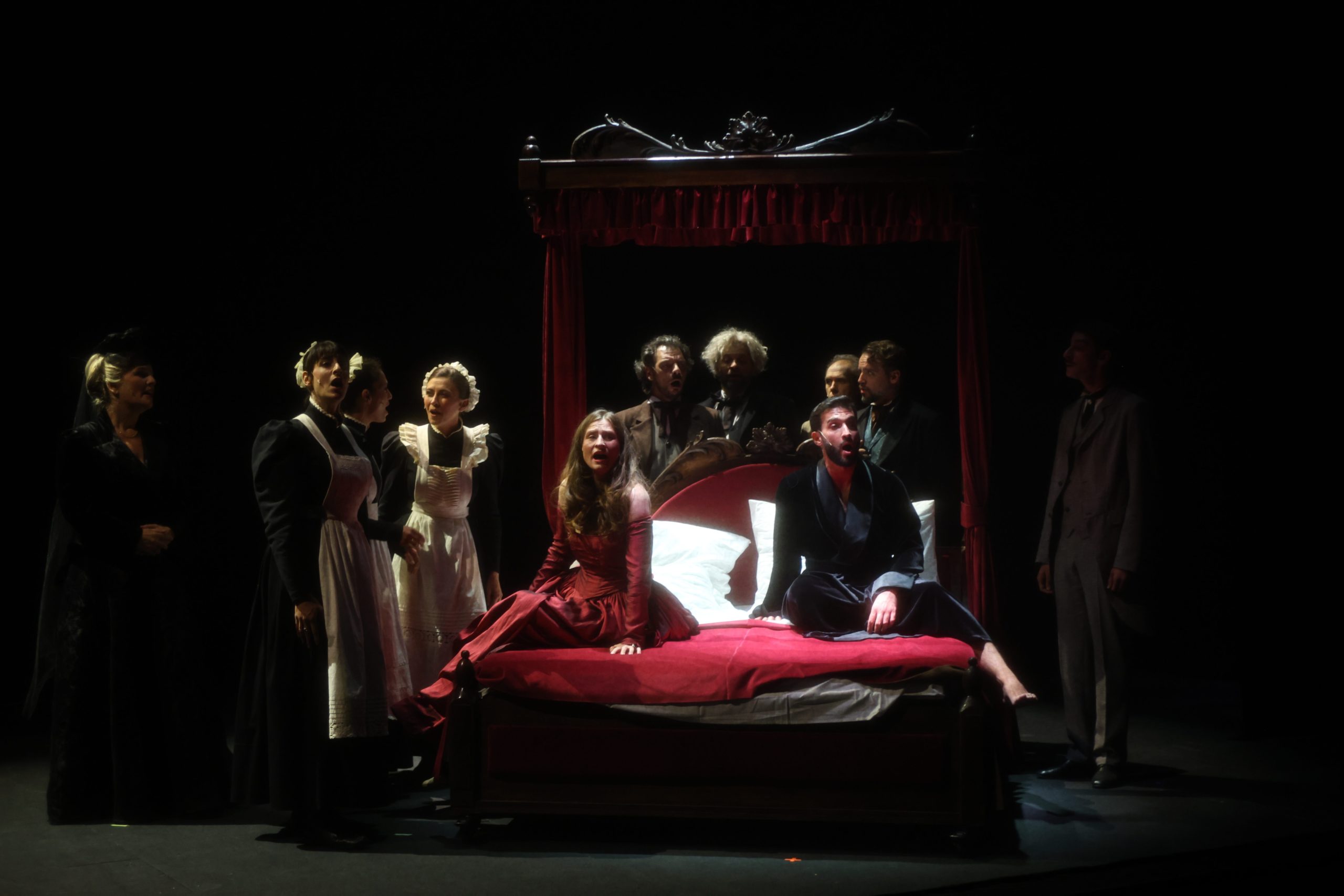 Un lavoro corale con attori-cantanti  (in scena gli interpreti dell’ensemble del Dramma Italiano di Fiume accanto ad un nutrito gruppo di giovani attrici e attori di grande talento ) che eseguiranno in scena le struggenti partiture vocali del compositore Bruno De Franceschi, coadiuvato nella sua ricerca da Andrea Cauduro. Il progetto sonoro realizzato da Gup Alcaro darà spazialità e ambiente a voci e suoni, intrecciandosi con il movimento musicale della scrittura che sarà naturalmente il cuore pulsante del progetto. Una favola crepuscolare e pirotecnica carica di stupore e ironia «dove – afferma il regista – a trionfare sulla vita è, amaramente, l’immaginazione».