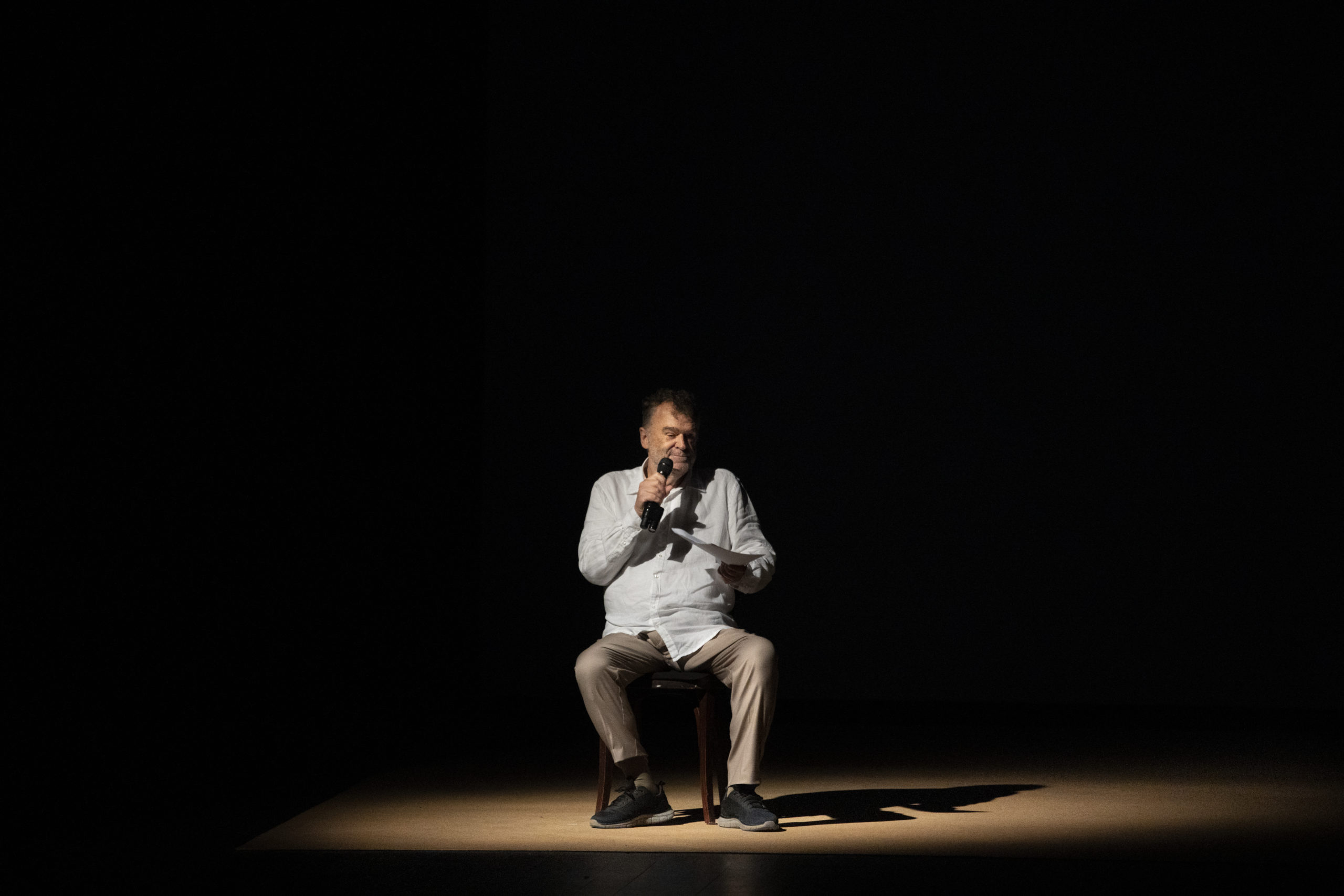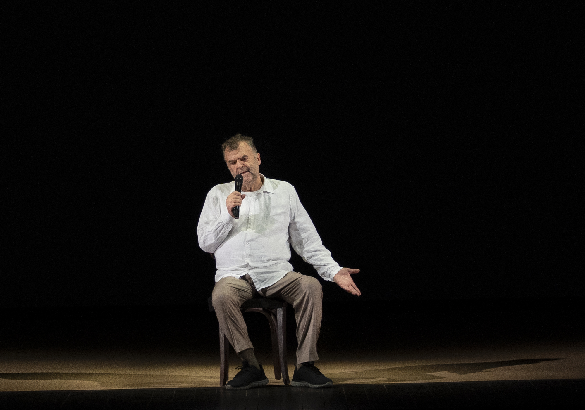Alla fine del suo precedente spettacolo Amore un uomo si assopisce sotto un albero secco, poi ricoperto di fiori. Da quest’immagine, riparte l’ultima creazione di Pippo Delbono, artista residente di ERT, che torna a Bologna dopo una lunga tournée all’estero. La pièce, nata dalla consapevolezza della propria fragilità, indaga il sentimento universale della perdita attraverso racconti e poesie originali dell’artista. È la prima volta che in una sua opera non sono presenti i testi di autori a lui cari: questa volta ha sentito di doversi affidare alle proprie parole, per dare voce ai suoi sentimenti e al dolore che lo ha invaso. L’uomo assopito ora desidera risvegliarsi dall’intorpidimento, consapevole del rischio di vedersi invecchiato e di trovarsi di fronte a un mondo peggiore di prima. Il suo desiderio però è di tornare a vivere. In scena elementi essenziali, come un deserto in cui Delbono è pronto ad affrontare il ricordo di Bobò, fedele e indimenticabile compagno di scena scomparso nel 2019, al quale lo spettacolo rende omaggio.
