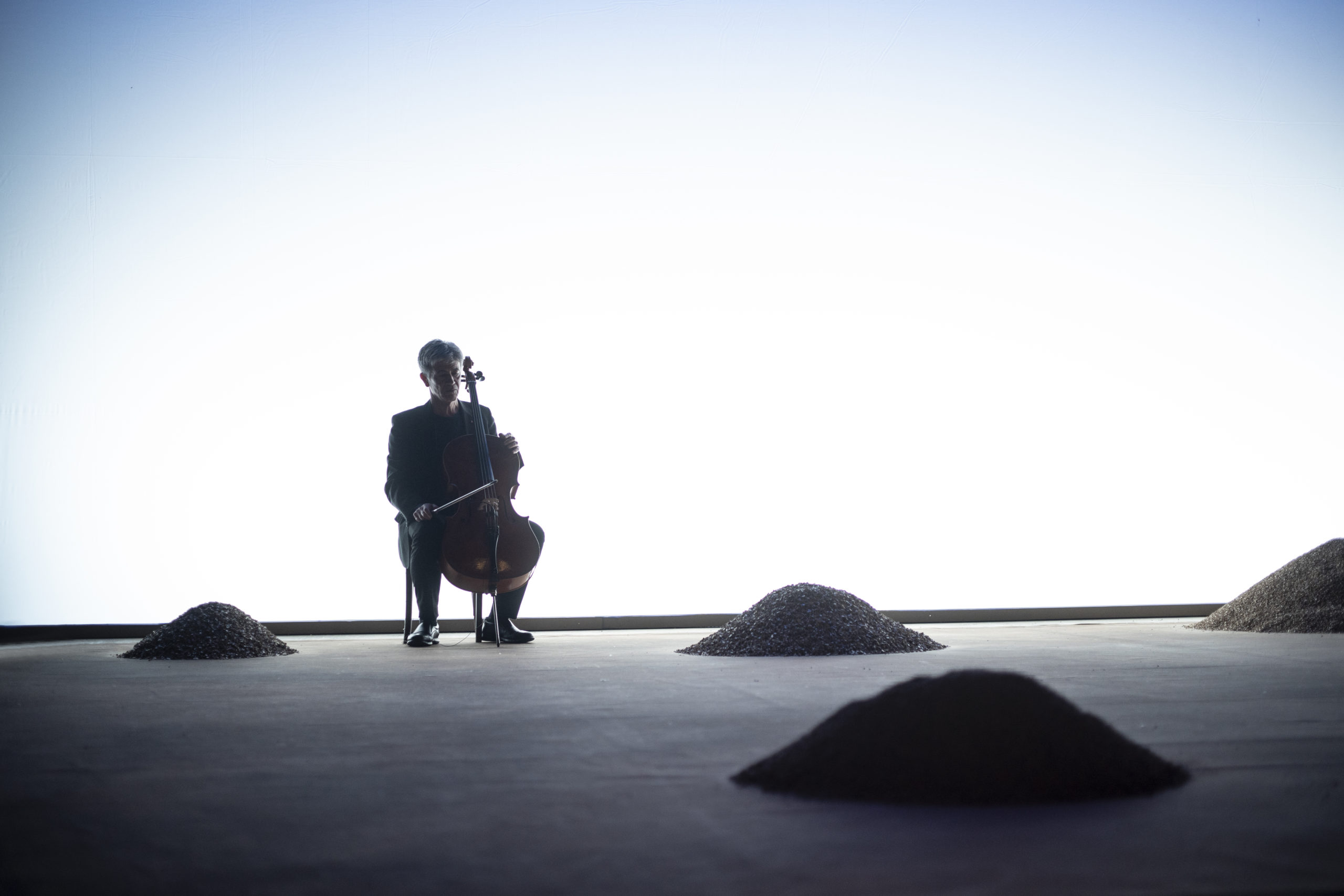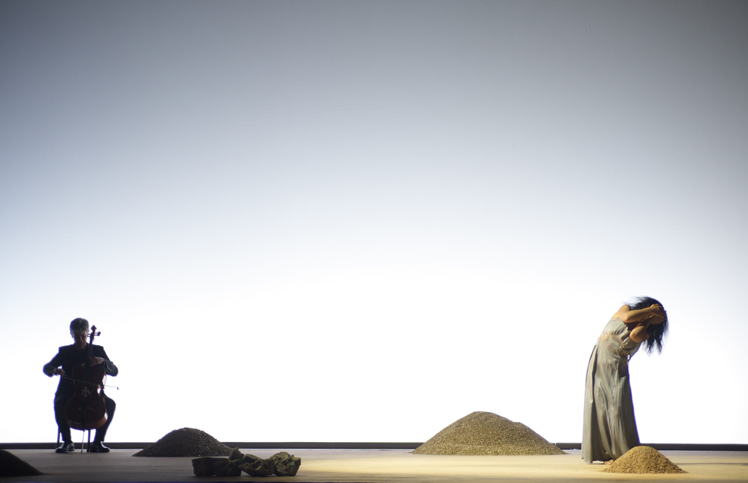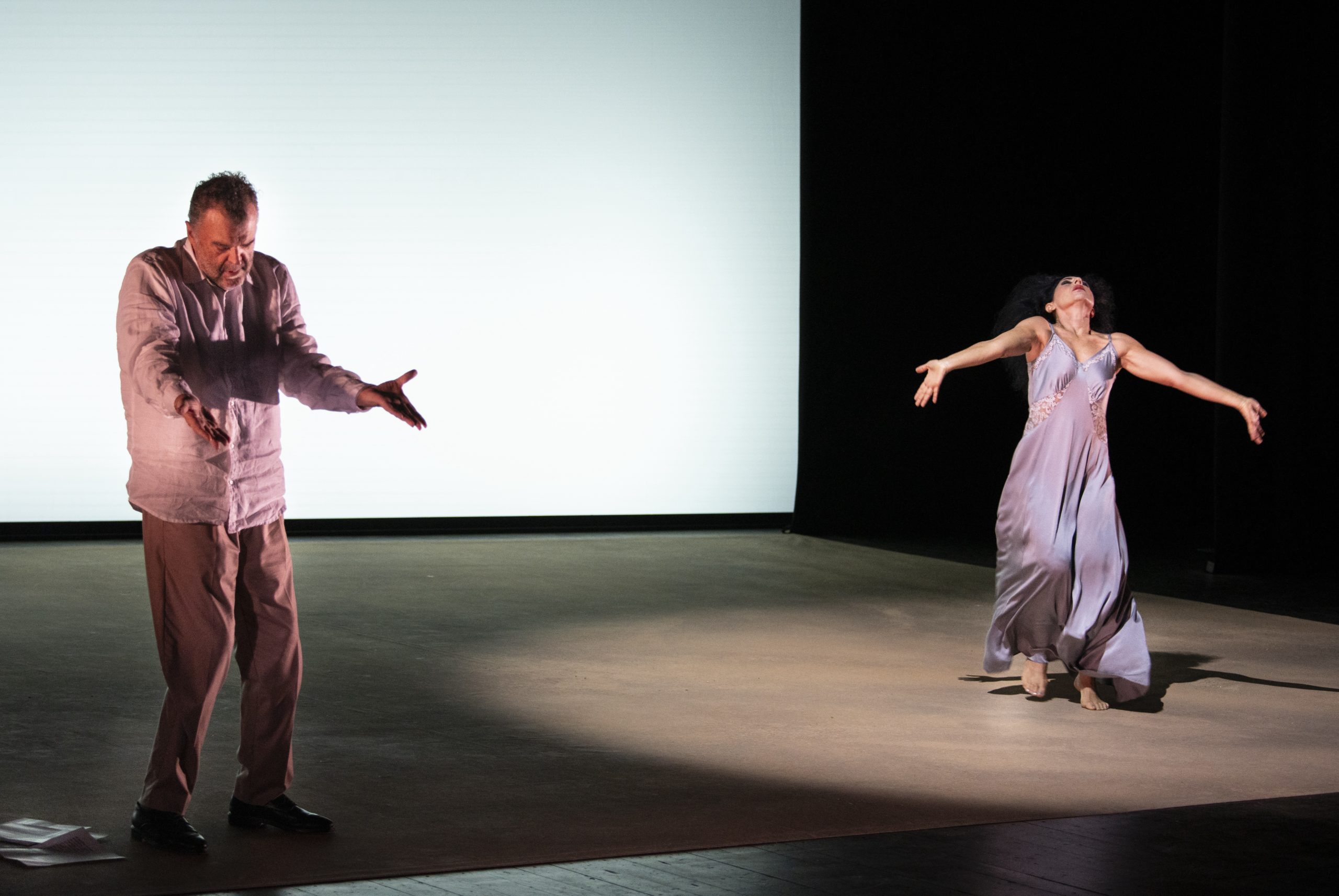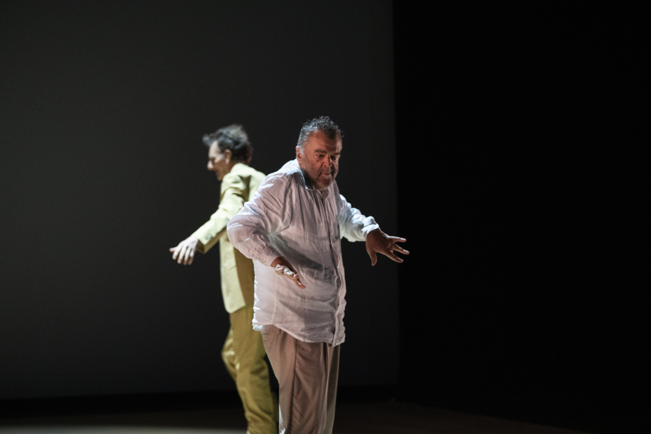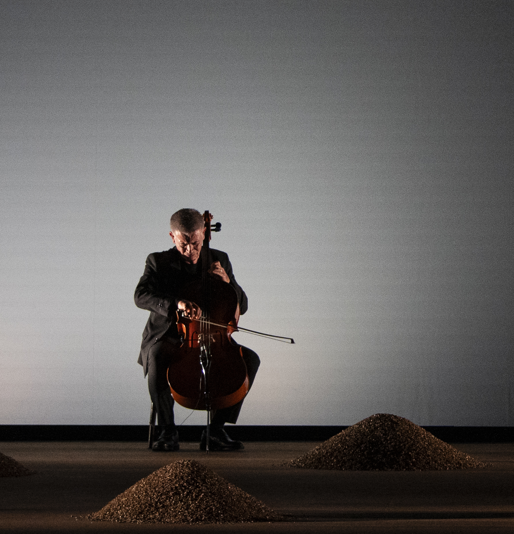 Tutto il teatro di Pippo Delbono nasce dalla musica e segue la partitura di un ritmo interiore. Il suo stile di composizione, ancora una volta, è musicale. Note che suonano lamenti di amore e tenerezza trascinano gli attori della Compagnia in una danza, un rito sacro, un funerale forse. Sulle note del virtuoso violoncellista Giovanni Ricciardi, in scena con il suo strumento, e su brani che provengono dalla memoria degli anni Settanta, Delbono si ripete: “Devi danzare nella guerra, nella tua guerra”.